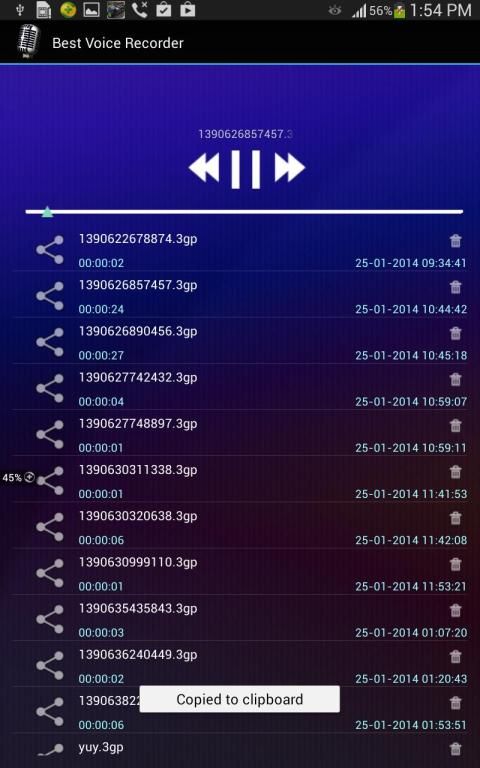 "Best Voice recorder" is a very helpful utility that allows the user to record and save the important lectures, conversations, voice recordings, song and voice recordings to internal Storage (e.g. mnt/sdcard/bestvoicerecorder) or external SD Card. After the recording, the user can browse through "My Records" and play-back the recorded content. BVR is equipped with share option to transfer the recorded content. we advice you to periodically check and copy all records to your PC or any other external storage.