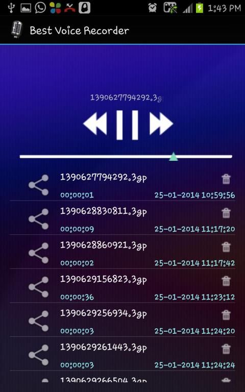 "सबसे अच्छी आवाज रिकॉर्डर" उपयोगकर्ता रिकॉर्ड और आंतरिक भंडारण के लिए महत्वपूर्ण व्याख्यान, बातचीत, आवाज रिकॉर्डिंग, गीत और आवाज रिकॉर्डिंग को बचाने के लिए अनुमति देता है कि एक बहुत ही उपयोगी उपयोगिता (जैसे MNT / sdcard / bestvoicerecorder) या बाह्य एसडी कार्ड है. रिकॉर्डिंग के बाद, उपयोगकर्ता "मेरे रिकॉर्ड" के माध्यम से ब्राउज़ और दर्ज सामग्री वापस खेल सकते हैं. बी.वी.आर. दर्ज सामग्री के हस्तांतरण को शेयर विकल्प के साथ सुसज्जित है. हम आपको समय समय पर जांच करें और अपने पीसी या किसी अन्य बाह्य भंडारण के लिए सभी रिकॉर्ड की नकल करने की सलाह.
