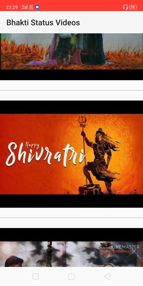 In this app you can and share all type Bhakti status videos on social media these videos are only 30 seconds Bhakti status videos so so if you love devastation Allah bhakti e then this app fulfill your requirement in this status app There are several type of bhakti videos like Shri Ram bhakti Radha bhakti Krishna bhakti Vishnu bhakti Brahma bhakti Krishna Bharti Vishwakarma bhakti Durga bhakti e Navratra bhakti Kali bhakti e Shakti and all god as goddess bhakti as well as also included in the section