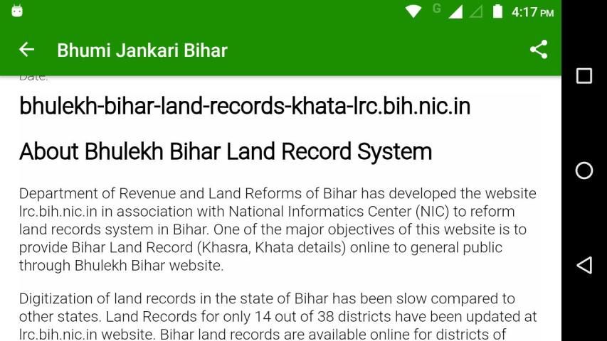 बिहार की भूमि रिकार्ड विवरण - यह ऐप्लिकेशन बिहार भूमि Jankari प्रदान करता है।