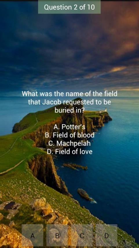 बाईबल के बारे में सवाल पर अपने आप प्रश्नोत्तरी और मज़ा आ रहा है, जबकि अपने ज्ञान पैनापन. कोशिश करते हैं और अपने खुद हरा या बस प्रश्नों के माध्यम से जाने के लिए स्कोर रखने के लिए नहीं चुनने के लिए स्कोर रखें. आधुनिक और ऐतिहासिक विश्वासियों के बुनियादी सवालों को जोड़ा किस्म के लिए (हर 10 में से 1 के बारे में) शामिल किए गए हैं. वे सेंट ऑगस्टीन, कोरी दस बूम, ओसवाल्ड मंडलों, Creflo डॉलर, एलिसाबेथ इलियट, बिली ग्राहम, जॉन Hagee, टीडी Jakes, मार्टिन लूथर किंग जूनियर, सीएस लुईस, मार्टिन लॉयड जोन्स, अधिकतम Lucado, जॉन मैकआर्थर, जॉइस मेयेर हैं डीएल मूडी, जॉर्ज मुलर, एंड्रयू मरे, चौकीदार नी, चार्ल्स Nieman, योएल Osteen, चक डी. पियर्स, जॉन मुरलीवाला, लियोनार्ड Ravenhill, एड्रियन रोजर्स, आर सी Sproul, चार्ल्स Spurgeon, चार्ल्स स्टेनली, जॉन Stott, चक Swindoll, हडसन टेलर, ओ Tozer, रिक वॉरेन स्मिथ Wigglesworth, रवि जकारिया, और Ziglar Zig,