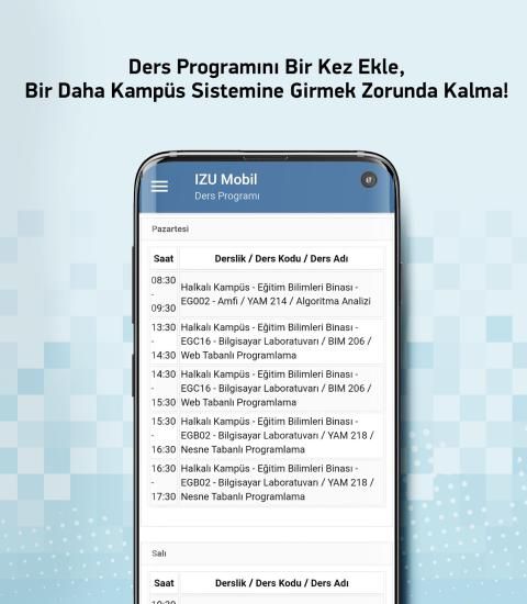 Ders programınızı uygulamaya ekleyerek kampüs sistemine giriş yapmaya gerek olmadan tek tıkla ders programınızı görebilirsiniz.