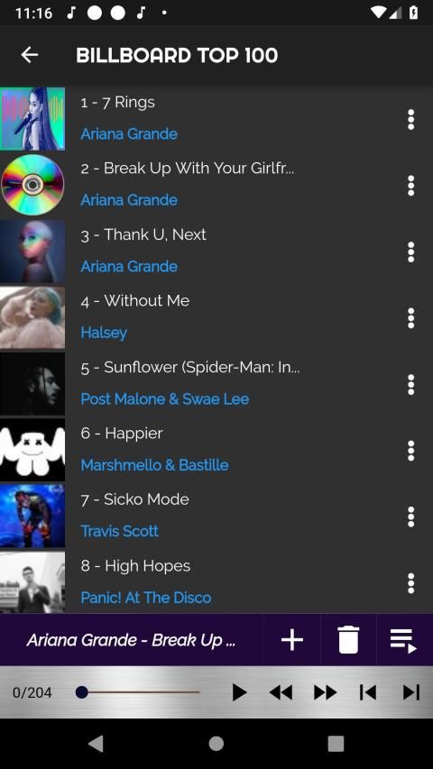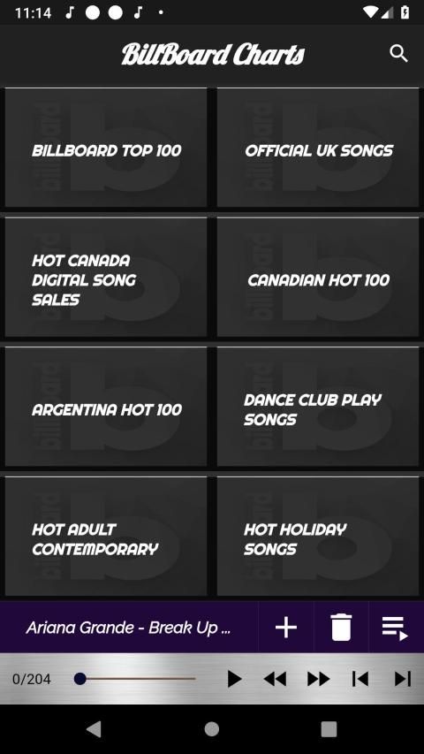 BillBoard Chart Music Player has easy to use, beautiful interface and various themes.