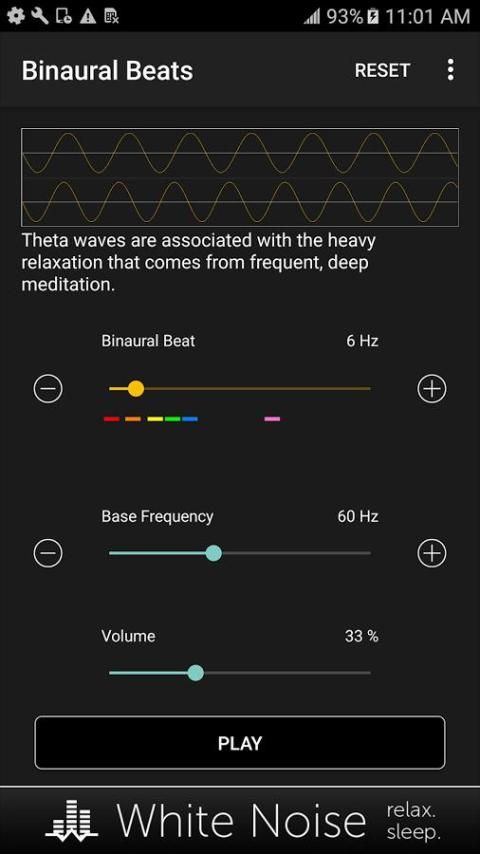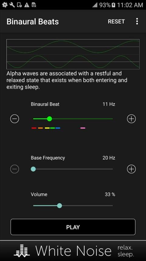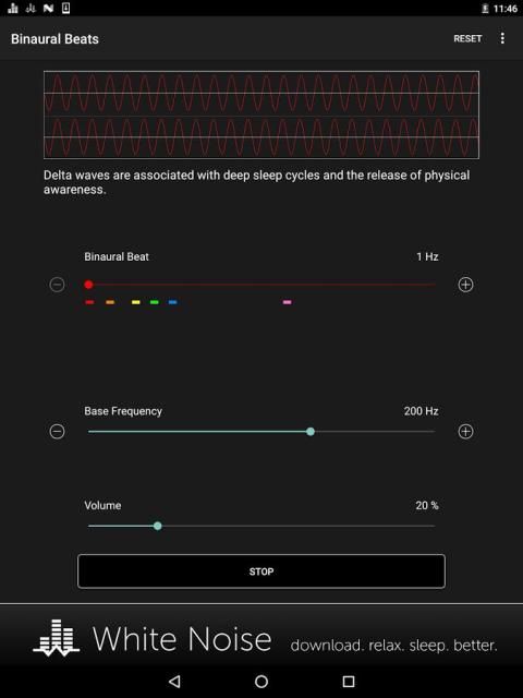 खींचें स्लाइडर 1 से 50 हर्ट्ज के लिए एक वांछित binaural हरा चयन करने के लिए। इसके बाद, एक स्वर है कि अपने कान के लिए सुखद लगता है के लिए आधार आवृत्ति खींचें। binaural हरा इस आधार आवृत्ति के आसपास उत्पन्न होता है। एक आरामदायक स्तर के लिए स्क्रीन पर मात्रा स्लाइडर का उपयोग कर डिवाइस मात्रा समायोजित करें। ऑडियो प्लेबैक टॉगल खेल / ठहराव बटन का उपयोग कर।