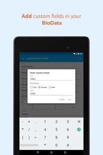 इस एप्लिकेशन को जल्दी से तुरंत अपने आवश्यकताओं के अनुसार अपना जैव डेटा बनाता है और आप या तो इमेज या पीडीएफ प्रारूप में तो आप इसे आसानी से साझा कर सकते हैं यह है और भी घर पर या किसी अन्य मुद्रण सेवा पर आसानी से इसे मुद्रित कर सकते हैं।