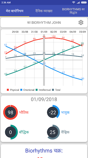 - हमारे Biorhythm कैलकुलेटर और गतिशील चार्ट का उपयोग कर आसानी से अपने Biorhythm चक्र खोजें