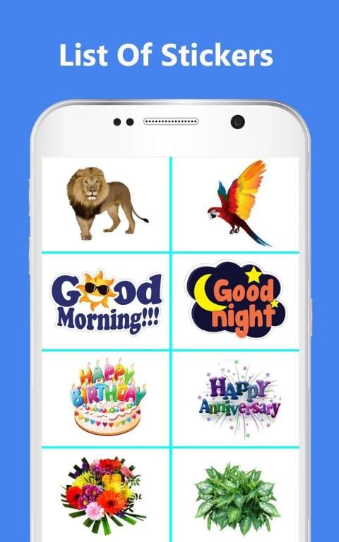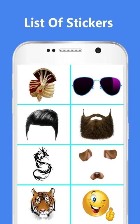 Birds Photo Editor has men hairstyle, mustache, beard, hat, tattoo, sunglass, smiley, flowers, plants, good morning, good night, happy birthday, birthday cakes, horse, lion, tiger, giraffe, elephant, zebra animals, women hairstyle, flower crown, women tattoo, women sunglass, mouth, love and miss you stickers.