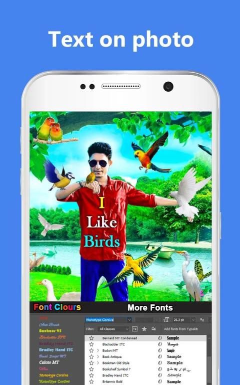 Birds Photo Editor has text option. Add quote or text as per your choice on the photo. This option helps you to convey your message with picture to others.