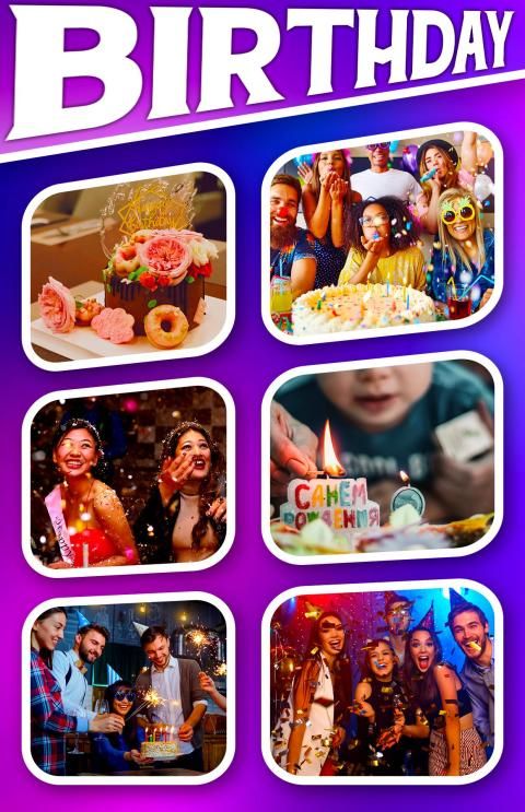 खूबसूरत थीम या फ्रेम्स और मूवी संगीत के साथ अपने स्मारक चित्रों से जन्मदिन वीडियो बनाएं।