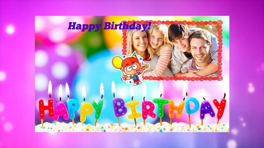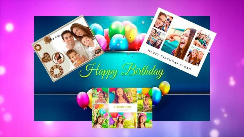 Your own birthday greeting cards with photo collage, photo frames and stickers.