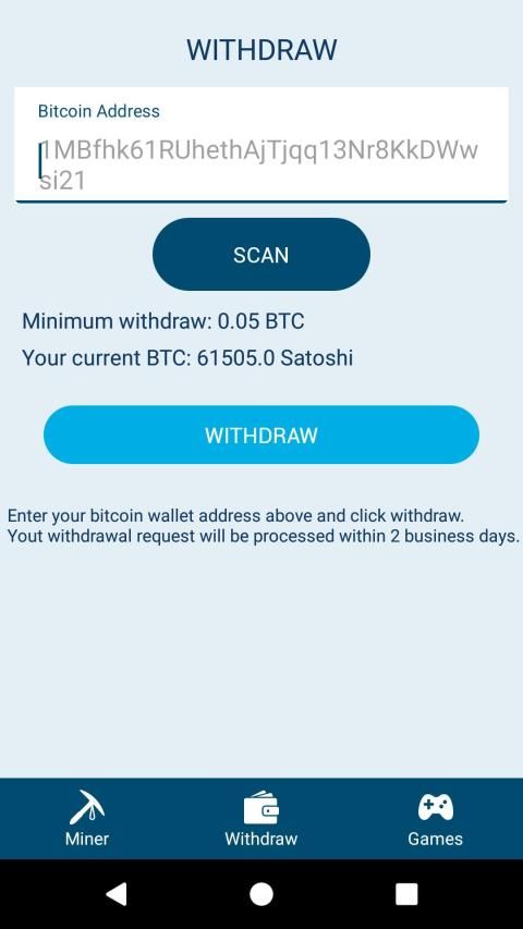 You are offered in a bitcoin miner game that allows you to feel like a real crypto investor. We tried to make the interface as simple and clear as possible. Bitcoin mining can be carried out while you are doing your usual business, and the phone is in standby mode. Remember - the number of miners is constantly growing. The "difficulty" of the blockchain network is also increasing.