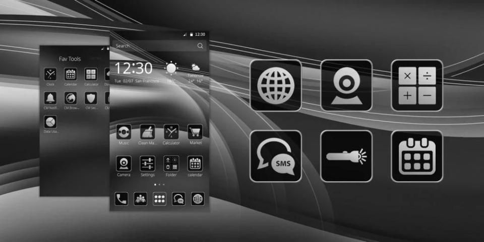 काले और चांदी के मुख्यमंत्री लांचर विषय विशेष जो अपने डिवाइस को निजीकृत कर सकते आसानी से एकीकृत प्रतीक और कलात्मक वॉलपेपर के दर्जनों, सहित मुख्यमंत्री लांचर उपयोगकर्ताओं के लिए बनाया गया एक स्वतंत्र विषय है।