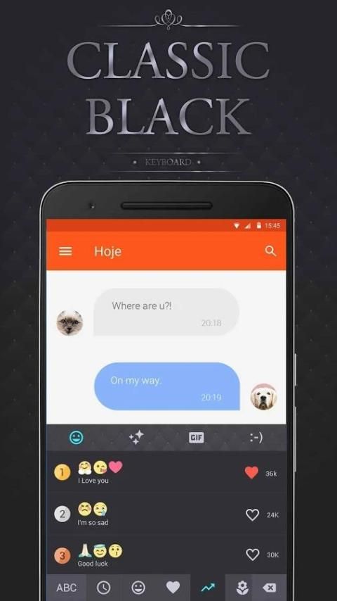 यह काले इमोजी कीबोर्ड थीम Facemoji कीबोर्ड का उपयोग करता है