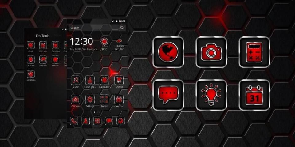 काले टेक मुख्यमंत्री लांचर थीम विशेष जो अपने डिवाइस को निजीकृत कर सकते आसानी से एकीकृत प्रतीक और कलात्मक वॉलपेपर के दर्जनों, सहित मुख्यमंत्री लांचर उपयोगकर्ताओं के लिए बनाया गया एक स्वतंत्र विषय है।