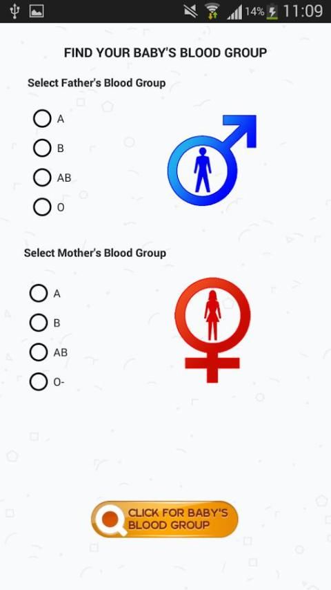 आप पिता और मां के रक्त समूह का चयन करके अपने बच्चे के लिए संभव रक्त समूह पा सकते हैं।