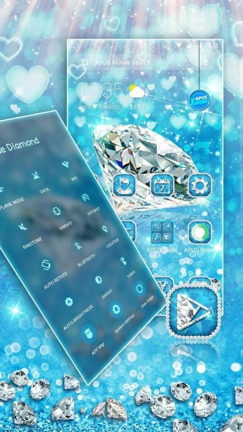 To apply the theme, please install our APUS Launcher first. Apply the Bling Shine Azure Diamond Launcher Theme 2019 to make your phone faster, orderly and cool. The original app icons, clock and weather theme of your phone will be replaced by the Bling Shine Azure Diamond Launcher Theme 2019. We have designed many customized themes for popular apps, these include camera apps, social apps, entertainment apps, useful tools and messenger apps. Our app also provides you thousands of themes from other categories, namely cartoon and anime themes, graffiti themes, gold themes, pink themes, black themes, love themes and many more. All of our beautiful themes are free and available at Google Play Store. Download and apply Bling Shine Azure Diamond Launcher Theme 2019 now! There are more sports (football, basketball), games and other beautiful themes waiting for you!