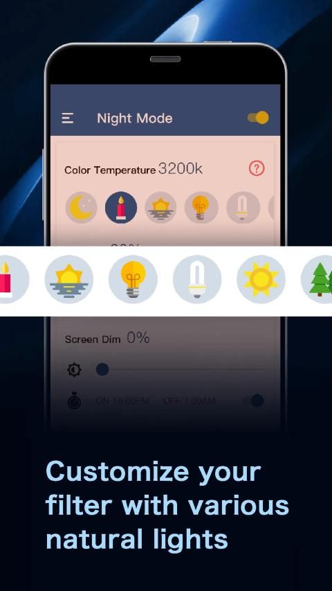 You can self-edit five filter modes, and adjust the color temperature of the blue light filter in night mode according to the darkness of the surrounding environment, so that you have a warm filter that is more suitable for you.