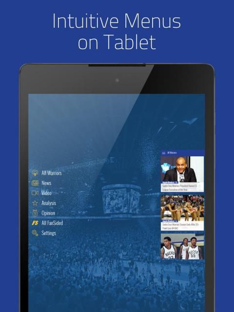 नियंत्रण कैसे आप अलर्ट की स्थापना और श्रेणियों के माध्यम से छंटाई, जबकि सहज ज्ञान युक्त मेनू आसान ब्लू मैन घेरा से और ताज़ी खबर के लिए FanSided भर फ़ीड के बीच टॉगल करने के लिए कर से वारियर्स सामग्री देख सकते हैं।