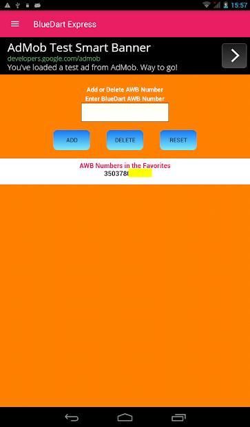 3. Click On the Add Button and the BlueDart Express AWB Number will be added in the Favorites Number.