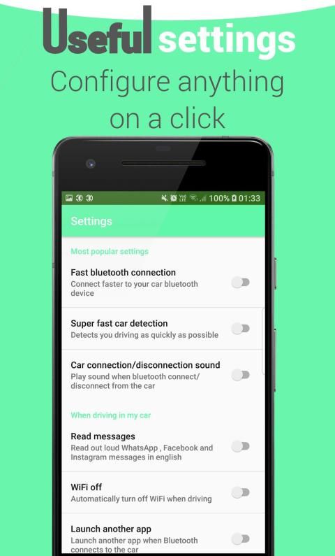 • Bluetooth Auto connect Detects you driving super fast and keeps Bluetooth connection fast as possible to the car Bluetooth device
