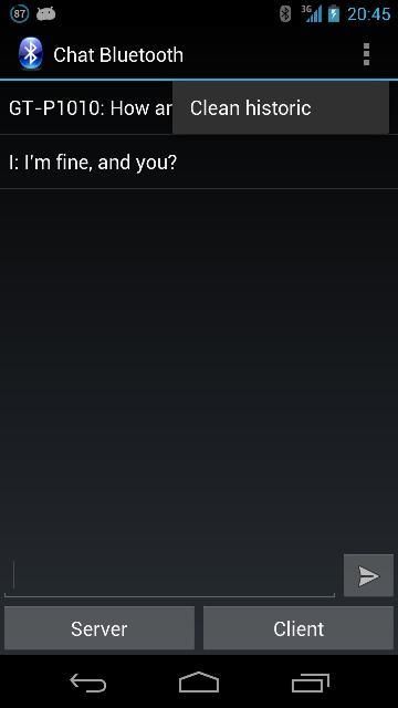 برنامج دردشة البلوتوث Bluetooth chat برنامج المحادثات النصية عبر البلوتوث bluetooth في اجهزة بويكت بي سي وسمارت فون وغيرها من الاجهزة التي تعمل على نظام التشغيل Android موبايل بكل سهولة ويسر وروعه الان استخدم البلوتوث في جوالك وكن الافضل بين اصحابك طبعأً يجب ان يكون البرنامج لديك ولدى صديقك وايضاً يجب ان تكون المسافة قريبة على مدى البلوتوث.