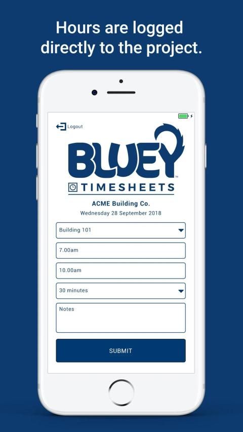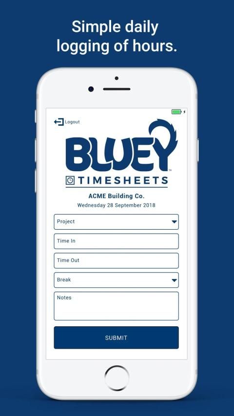 Bluey Timesheets के साथ, कर्मचारी और ठेकेदार अपने सभी प्रोजेक्ट्स या कार्यपत्रकों के लिए प्रतिदिन अपने समय की आपूर्ति इस निशुल्क सरल माध्यम से Bluey Timesheet ऐप का उपयोग करने के लिए करेंगे। वास्तविक समय, कहीं भी, कभी भी।
