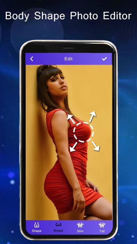 application which has all best tools to make your body shape beautiful.this is a Photo editor which can enlarge Boobs, make bigger Eyes or round your Butt and other Body Parts like a Cosmetic Surgery. an app which lets you easy resizes your body parts. Make thin legs and arms; get a flat belly or Six Pack now! With this App. you can edit your body shape like you ever want! Lose Weight on Pictures like you did a diet for the perfect summer body shape Photos.
