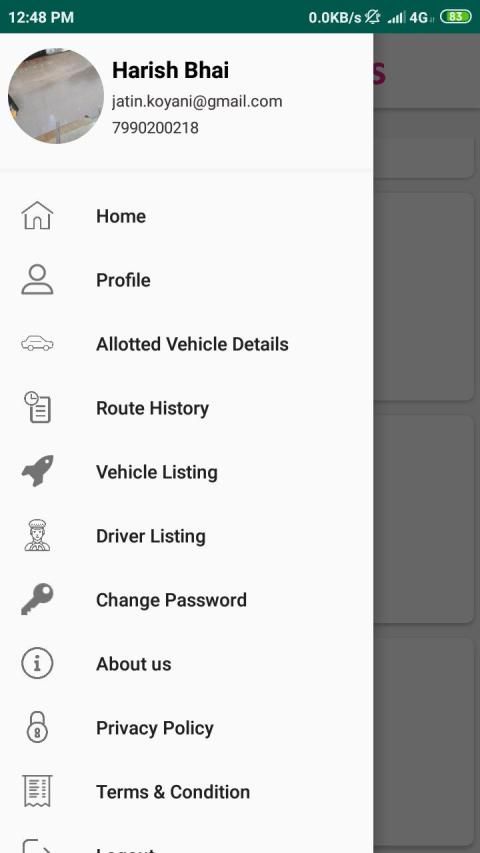 * The Driver login with mapped Routes.