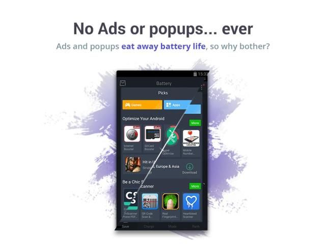 Boost Battery Saver never wastes power on battery draining ads or annoying popups