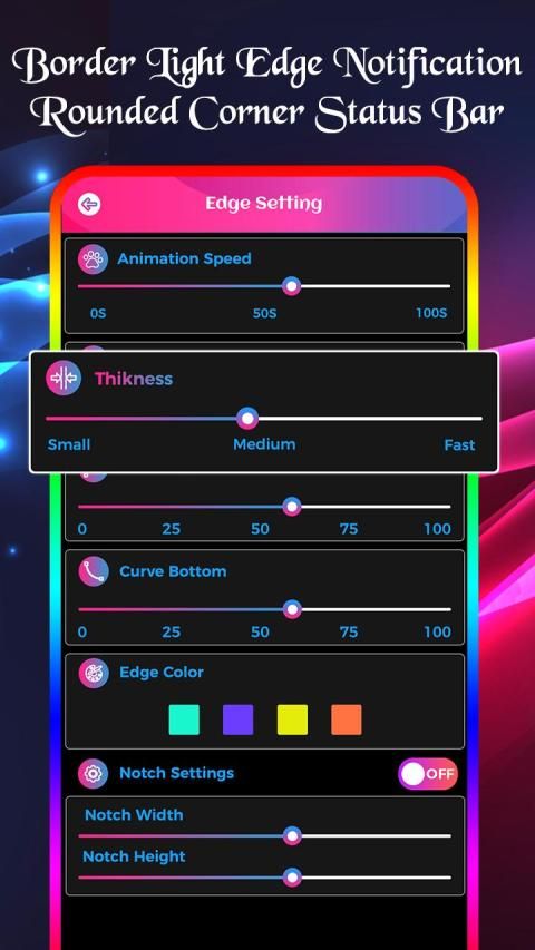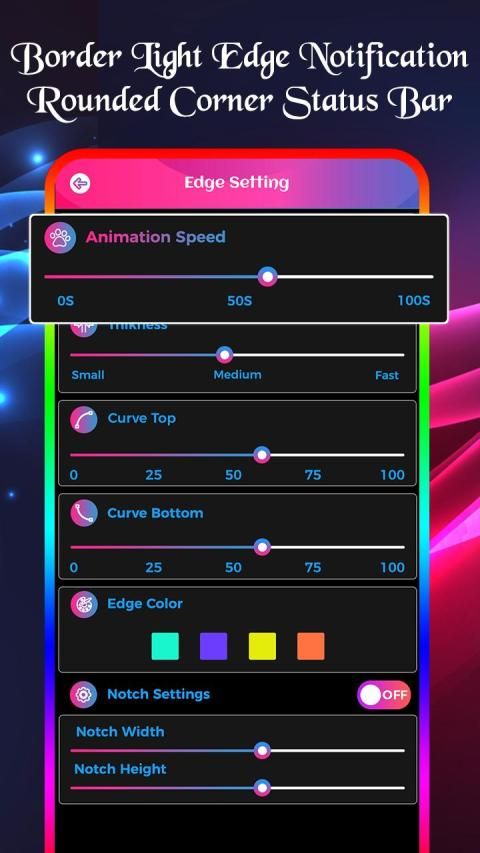 app allows you to set effects like Animation Speed, Thickness, Curve Top, Curve bottom, color and also best option to set Notch to make more adorable effects. An application which allows animated live wallpaper theme with that you can set lighting live wallpaper in your device. the application does not consume more battery while you set in your mobile screen as live wallpaper.