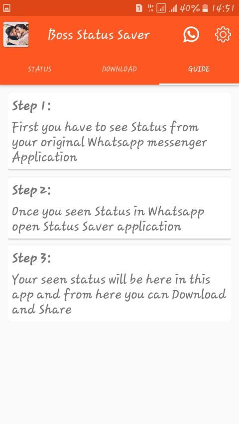 Download and enjoy our service, 20,000+ users downloaded Boss Status Saver latest version on 9Apps for free every week! The application is severely widely use. This hot app was released on 2020-02-14. You can see more apps release recently on 9Apps.