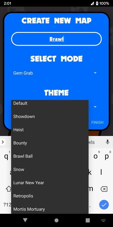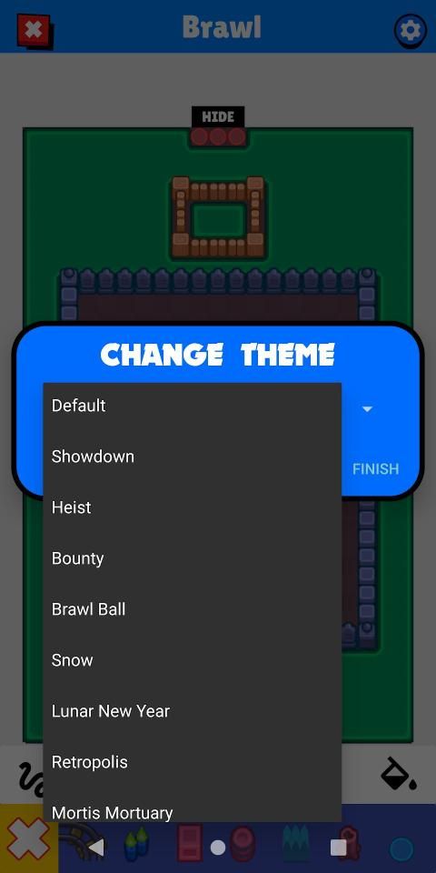 Brawl Map Maker for Brawl Stars let's you create your own maps easily with a variety of tools, lets you choose theme of your choice from the game in every mode and auto-saves your maps even if you are offline and allows you to share your fantastic maps everywhere by converting it into an image and saving them into your gallery with features to let your maps be easily identified by your in-game username and unique player tag or your redditor.