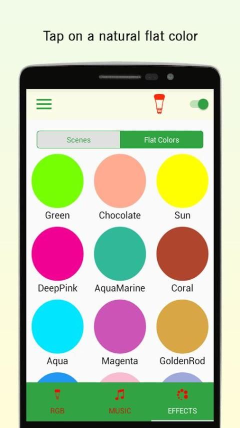 तुम बस अपने स्मार्ट फोन के स्क्रीन पर उंगलियों फिसलने से रंग और अपने जादू बल्ब का पैटर्न बदल सकते हैं। रंगीन माहौल में अपने घर देखें ...।!