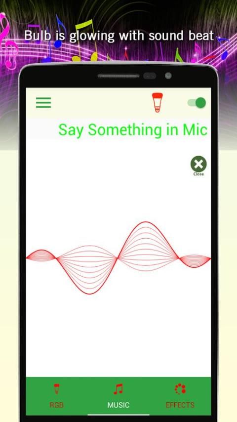 अपने स्मार्ट फोन और आरजीबी एलईडी बल्ब चमक पर संगीत नाटक संगीत की धड़कन के साथ बदल जाएगा।