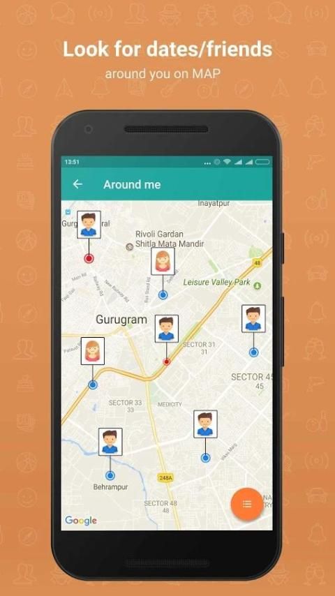 ओ मानचित्र पर आप के आसपास मित्र खोजें