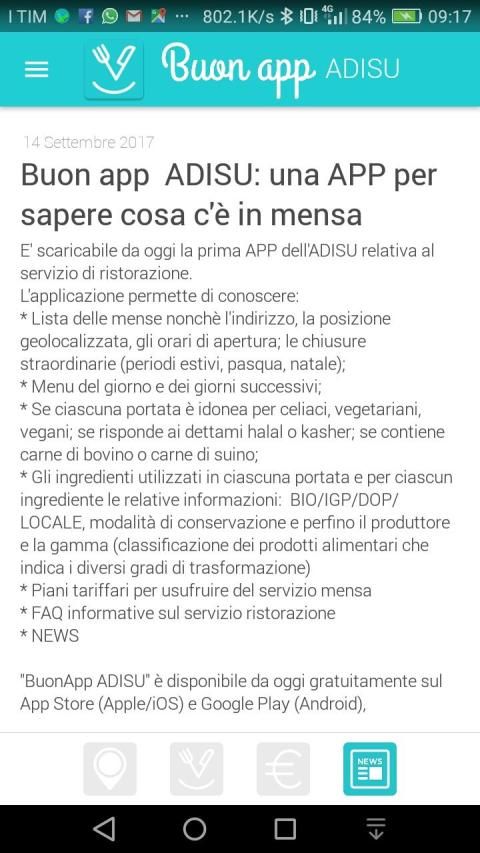 - migliorata la grafica relativa alle news e al dettaglio mensa