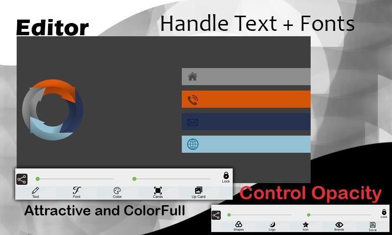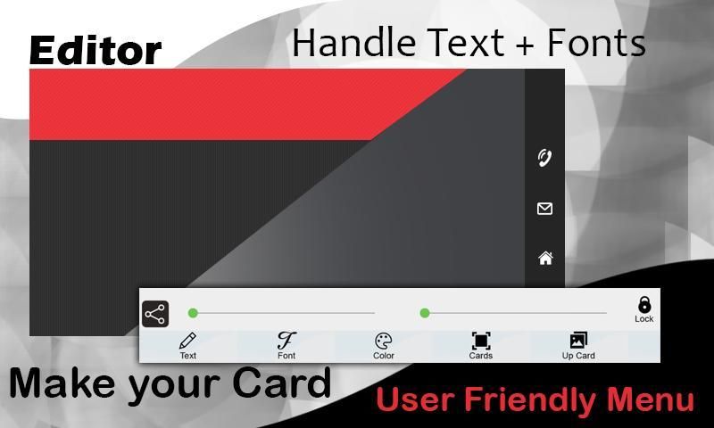 बिजनेस कार्ड निर्माता विजिटिंग कार्ड निर्माता आप को देखते हुए डिजाइन और अनुकूलित डिजाइन विशेषताएं के अनुसार विजिटिंग कार्ड बनाने के लिए मदद करता है। सरल और स्मार्ट कार्ड निर्माता और बिजनेस कार्ड निर्माता