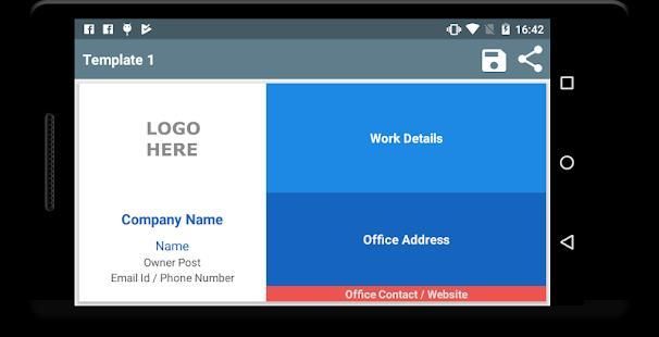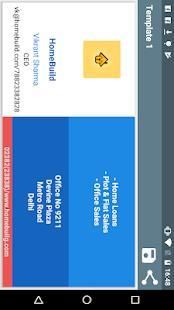 अपने टेम्पलेट कार्ड के प्रकार अपनी खुद की कंपनी के लोगो, नाम, पद, संपर्क विवरण, काम, कार्यालय का पता चुनें और डालें और एक मिनट में अपने बिजनेस कार्ड बनाता है।