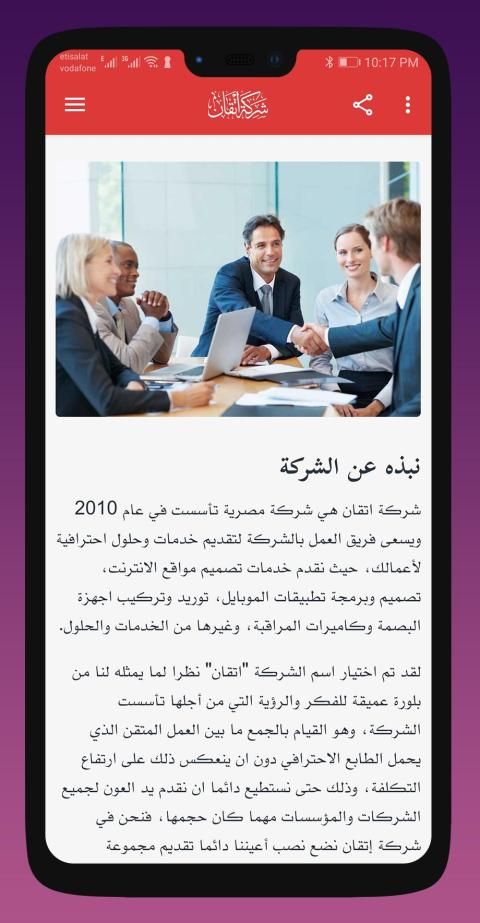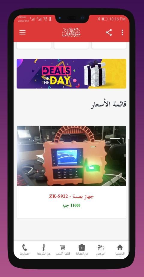 يضم هذا التطبيق اهم الحلول والخدمات الخاصة بالشركة والمؤسسات وأيضا الأشخاص، يشرح التطبيق الخدمات التي نقدمها مثل: أجهزة البصمة، كاميرات المراقبة، تصميم مواقع الانترنت، تركيب وصيانة الانتركم، التسويق الالكتروني، بوابات كشف سرقة الملابس وغيرها العديد والعديد من الخدمات والحلول، وأيضا جاليري صور لنماذج من أعمالنا، هذا بالإضافة الى أحدث العروض المتوفرة لدينا، هذا بالاضافة الى قائمة أسعار لمختلف المنتجات التي نقدمها لجمهور المتعاملين معنا.