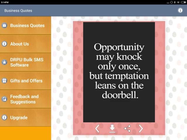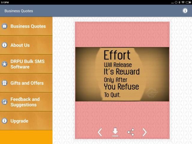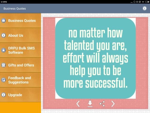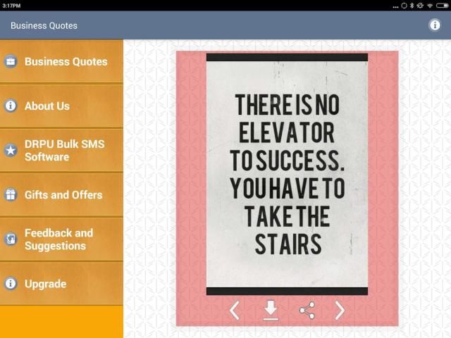 आप अपने मोबाइल उपकरणों भंडारण करने के लिए या अपने मेमोरी कार्ड के साथ ही ब्लूटूथ हस्तांतरण के माध्यम से साझा करने के लिए इन उद्धरण बचा सकता है। आप अपने कार्यालय में या अपने काम के स्थान में कहीं भी अपनी कंपनी में प्रदर्शित करने के लिए अपने समाचार पत्र, व्यापार प्रस्तुति, बुलेटिन बोर्ड में या प्रेरणादायक पोस्टर पर ये उद्धरण संदेशों और तस्वीरों का उपयोग कर सकते हैं।