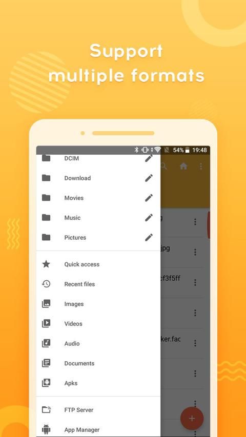 Multi-view: Display file types, including images, audio, video, downloads, etc.