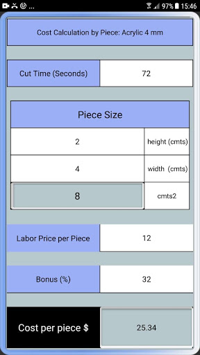 The best application for work with Laser and Router machines, the most effective and fastest to calculate costs, send vouchers, calculate time and price of cut according to material and work area, etc.