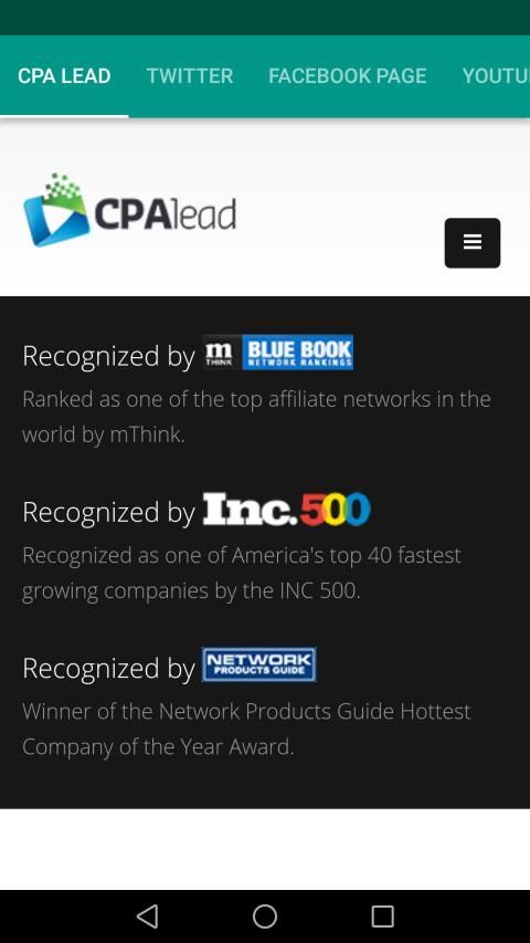 CPA लीड जनरेशन नेटवर्क, जो PPC विज्ञापन, CPA ऑफ़र और CPI मोबाइल ऐप इंस्टॉल करता है। CPA लीड एक वेब और मोबाइल PPC विज्ञापन नेटवर्क है, जो Android और iOS मोबाइल ऐप्स, कॉन्टेंट लॉकर्स, वेबसाइट्स और मीडिया खरीदारों को CPA लीड जीन ऑफर करता है।