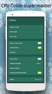 CPU Coller super master - Phone Temperature Controller - Phone Cooler & CPU Temp Controller is a CPU temperature detection app. It controls the operations of apps that heat up the CPU, to reduce CPU utilization and cool down your device & quick cool device can free up RAM and clean background tasks.