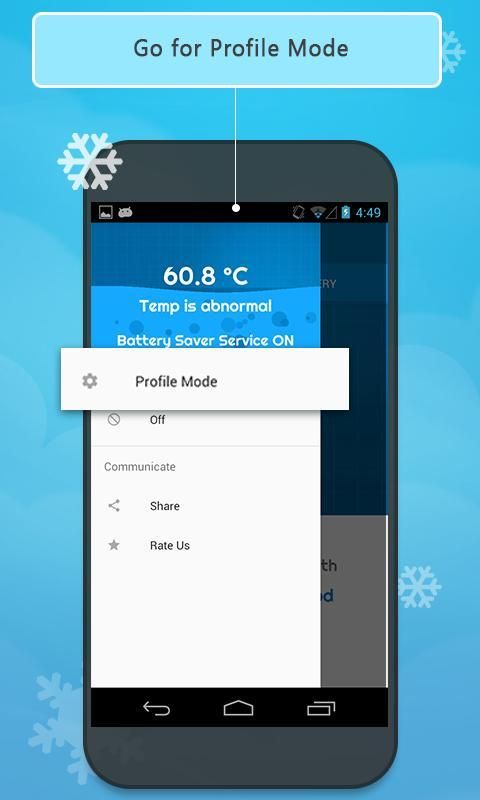 ○ फोन शांत हो जाओ: एप्लिकेशन overheating क्षुधा बंद कर देता है और बदले में फोन 5 से 10 डिग्री नीचे ठंडा।