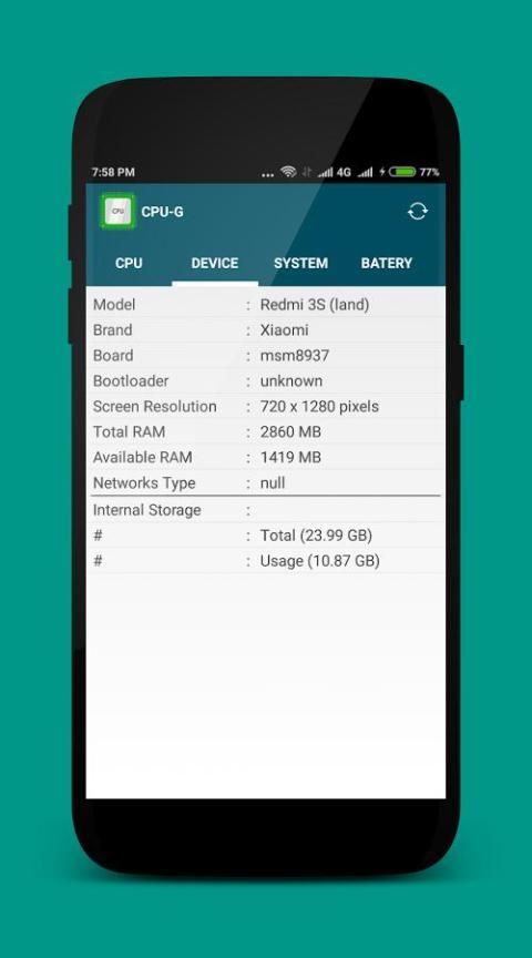 सीपीयू-जी एक स्वतंत्र अनुप्रयोग है कि आपके डिवाइस के बारे में जानकारी की रिपोर्ट है