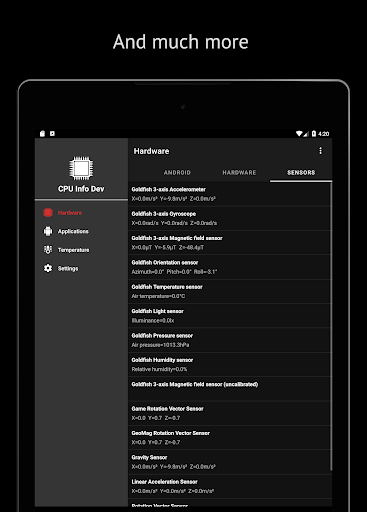 सीपीयू जानकारी आपके डिवाइस के हार्डवेयर और सॉफ्टवेयर के बारे में मुख्य जानकारी प्रदान करती है: