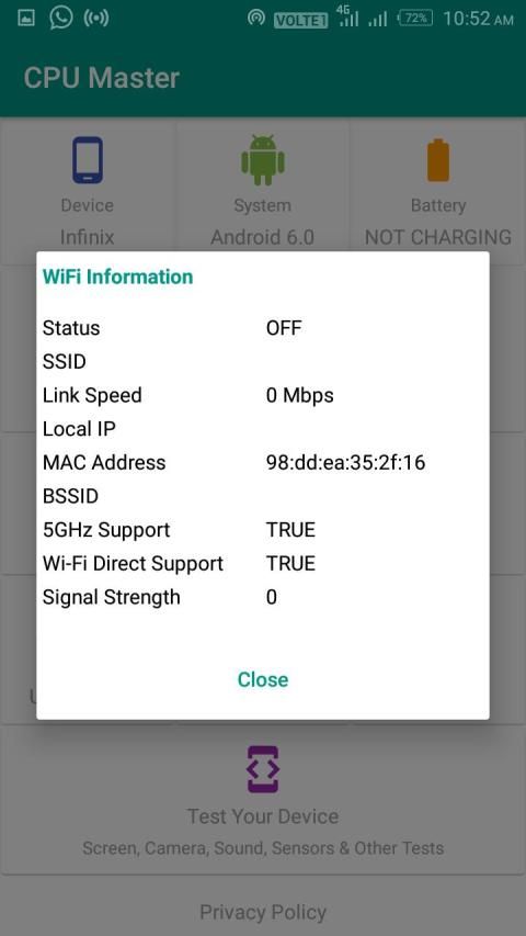 + WiFi स्थिति: कनेक्टेड या नहीं, WiFi कनेक्टेड नाम, WiFi Mac पता