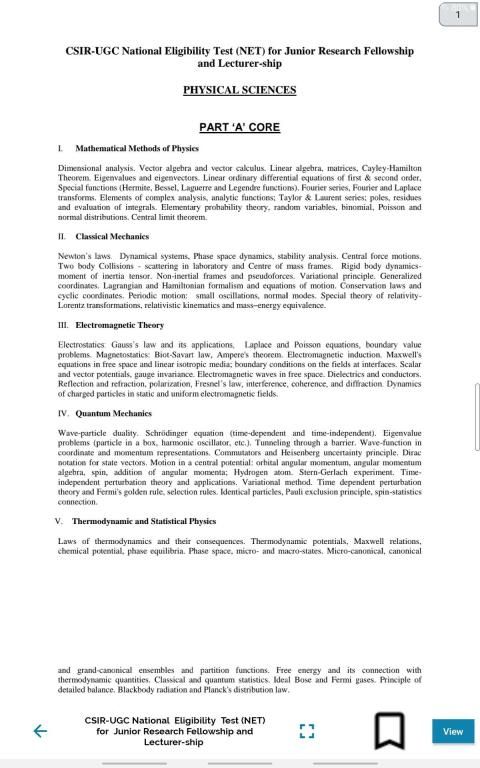 CSIR NET / JRF भौतिक विज्ञान और कई विश्वविद्यालयों (M.Sc. भौतिकी) के लिए पाठ्यक्रम