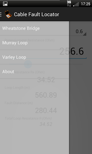 Application for calculating the fault position of a cable using a Wheatstone Bridge, Murray και Varley Loops (short-circuit or grounding).